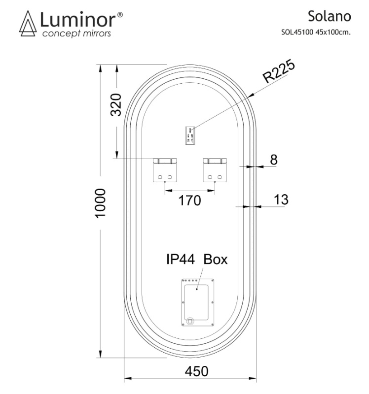 Καθρέπτης Μπάνιου LUMINOR SOLANO SOL45100 45X100εκ.