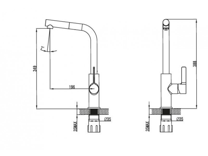 Υψηλό περιστρεφόμενο ρουξούνι με συρόμενο ντους και σπιράλ βαρέως τύπου.