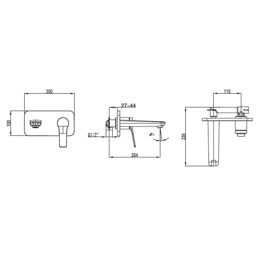 Μπαταρία νιπτήρος τοίχου, σε μαύρο ματ χρώμα