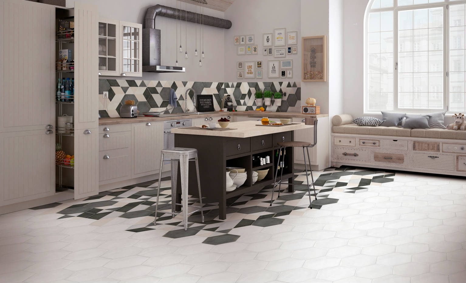 Πλακάκι δαπέδου Ισπανικό,  της εταιρίας KEROS CERAMICA, διάστασης 23Χ27 εξάγωνο